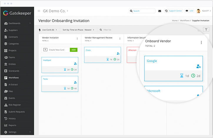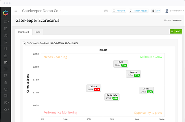 Gatekeeper provides dedicated modules and customisable dashboards for supplier performance and spend. Having this knowledge readily available and in a shareable format means the entire organisation can discuss the results delivered so far and make recommendations for improvements moving forward.